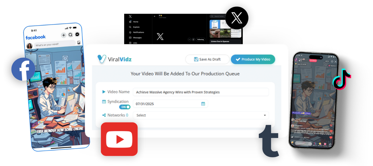 Our AI-driven video platform simplifies content creation from start to finish. Viral Vidz combines smart scripting, eye-catching visuals, and one-click publishing to help agencies and creators produce scroll-stopping videos without the cost of traditional production.